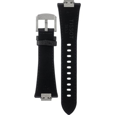 Esta bracelete de relógio Tissot é feita de couro e está fixada ao relógio através de pinos carregados por mola de liberação rápida. A bracelete tem uma largura de 25 mm e fecha através de fecho. A bracelete não tem uma montagem a direito, o que significa que esta bracelete só é adequada para os relógios listados abaixo.