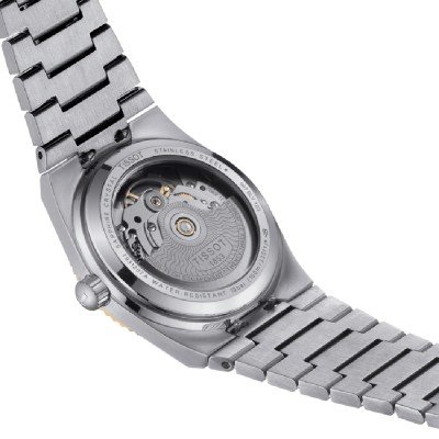 Com 35 mm, o Tissot PRX Powermatic 80 destina-se às mulheres, mas o seu design modernista também pode agradar aos homens com um pulso mais fino. O relógio faz parte da icónica família de relógios com bracelete integrada PRX, com uma caraterística extra: a luneta canelada deste relógio é feita de ouro de 19 quilates, contrastando lindamente com o mostrador em aço inoxidável polido com um raiado suave em tons de prata. Dá a este relógio de design elegante um toque de luxo e elegância.