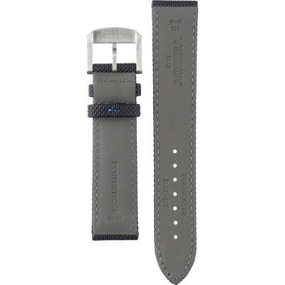 Esta bracelete de relógio Tissot é feita de couro sintético e está fixada ao relógio através de pinos de pressão. A bracelete tem uma largura de 19 mm e fecha através de fecho. A bracelete tem uma montagem a direito, o que significa que esta bracelete é adequada para todos os relógios Tissot com montagem da bracelete a direito.