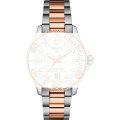 Esta bracelete de relógio Tissot é feita de aço inoxidável e está fixada ao relógio através de pinos carregados por mola de liberação rápida. A bracelete tem uma largura de 18 mm e fecha através de fivela dobrável com botões de pressão e segurança. A bracelete não tem uma montagem a direito, o que significa que esta bracelete só é adequada para os relógios listados abaixo.