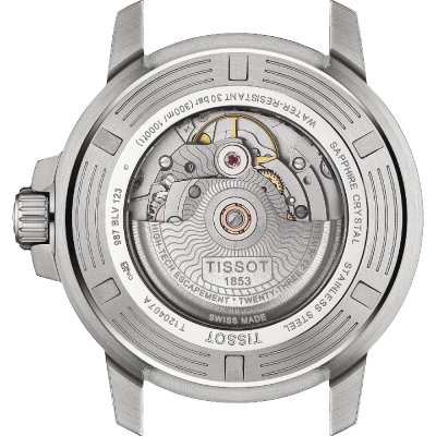 Este relógio Tissot tem uma caixa de Inox com um diâmetro de 43 mm e está equipado com uma bracelete de Inox. A caixa possui um movimento ETA e o relógio tem um vidro Safira.