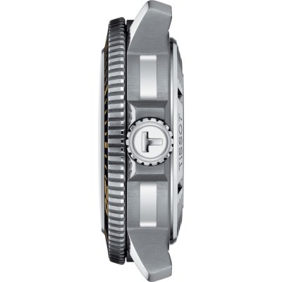 Este relógio Tissot tem uma caixa de Inox com um diâmetro de 46 mm e está equipado com uma bracelete de borracha. A caixa possui um movimento ETA e o relógio tem um vidro Safira anti-reflexo única.