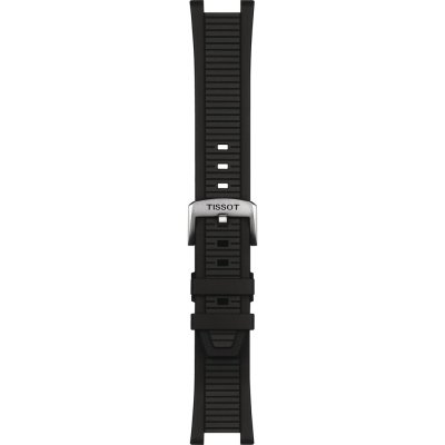 Esta bracelete de relógio Tissot é feita de silicone e está fixada ao relógio através de parafuso de sela. A bracelete tem uma largura de 22 mm e fecha através de fecho. A bracelete não tem uma montagem a direito, o que significa que esta bracelete só é adequada para os relógios listados abaixo.