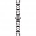 Esta bracelete de relógio Tissot é feita de aço inoxidável e está fixada ao relógio através de pinos em aço. A bracelete tem uma largura de 22 mm e fecha através de fivela butterfly com botões de pressão. A bracelete não tem uma montagem a direito, o que significa que esta bracelete só é adequada para os relógios listados abaixo.
