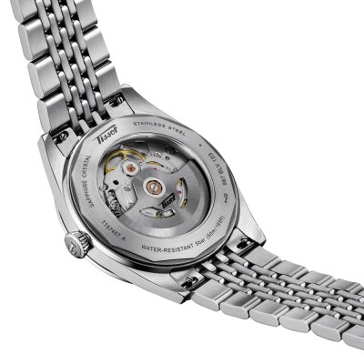 Este relógio Tissot tem uma caixa de Inox com um diâmetro de 39 mm e está equipado com uma bracelete de Inox. A caixa possui um movimento ETA e o relógio tem um vidro Safira anti-reflexo única.