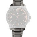Esta bracelete de relógio Tommy Hilfiger é feita de aço inoxidável e está fixada ao relógio através de pinos de pressão. A bracelete tem uma largura de 22 mm e fecha através de fivela dobrável com botões de pressão. A bracelete não tem uma montagem a direito, o que significa que esta bracelete só é adequada para os relógios listados abaixo.