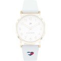 Esta bracelete de relógio Tommy Hilfiger é feita de silicone e está fixada ao relógio através de pinos de pressão. A bracelete tem uma largura de 16 mm e fecha através de fecho. A bracelete tem uma montagem a direito, o que significa que esta bracelete é adequada para todos os relógios Tommy Hilfiger com montagem da bracelete a direito.