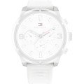 Esta bracelete de relógio Tommy Hilfiger é feita de silicone e está fixada ao relógio através de pinos de pressão. A bracelete tem uma largura de 24 mm e fecha através de fecho. A bracelete tem uma montagem a direito, o que significa que esta bracelete é adequada para todos os relógios Tommy Hilfiger com montagem da bracelete a direito.
