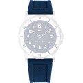 Esta bracelete de relógio Tommy Hilfiger é feita de silicone e está fixada ao relógio através de pinos de pressão. A bracelete tem uma largura de 19 mm e fecha através de fecho. A bracelete tem uma montagem a direito, o que significa que esta bracelete é adequada para todos os relógios Tommy Hilfiger com montagem da bracelete a direito.
