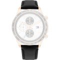 Esta bracelete de relógio Tommy Hilfiger é feita de couro e está fixada ao relógio através de pinos de pressão. A bracelete tem uma largura de 21 mm e fecha através de fecho. A bracelete tem uma montagem a direito, o que significa que esta bracelete é adequada para todos os relógios Tommy Hilfiger com montagem da bracelete a direito.