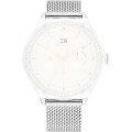 Esta bracelete de relógio Tommy Hilfiger é feita de aço inoxidável e está fixada ao relógio através de pinos de pressão. A bracelete tem uma largura de 18 mm e fecha através de fecho milanese. A bracelete tem uma montagem a direito, o que significa que esta bracelete é adequada para todos os relógios Tommy Hilfiger com montagem da bracelete a direito.