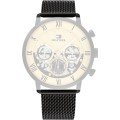 Esta bracelete de relógio Tommy Hilfiger é feita de aço inoxidável e está fixada ao relógio através de pinos de pressão. A bracelete tem uma largura de 22 mm e fecha através de fecho milanese. A bracelete tem uma montagem a direito, o que significa que esta bracelete é adequada para todos os relógios Tommy Hilfiger com montagem da bracelete a direito.