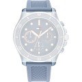Esta bracelete de relógio Tommy Hilfiger é feita de silicone e está fixada ao relógio através de pinos de pressão. A bracelete tem uma largura de 20 mm e fecha através de fecho. A bracelete tem uma montagem a direito, o que significa que esta bracelete é adequada para todos os relógios Tommy Hilfiger com montagem da bracelete a direito.