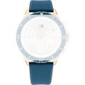 Esta bracelete de relógio Tommy Hilfiger é feita de silicone e está fixada ao relógio através de pinos de pressão. A bracelete tem uma largura de 19 mm e fecha através de fecho. A bracelete tem uma montagem a direito, o que significa que esta bracelete é adequada para todos os relógios Tommy Hilfiger com montagem da bracelete a direito.