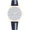 Esta bracelete de relógio Tommy Hilfiger é feita de silicone e está fixada ao relógio através de pinos de pressão. A bracelete tem uma largura de 15 mm e fecha através de fecho. A bracelete tem uma montagem a direito, o que significa que esta bracelete é adequada para todos os relógios Tommy Hilfiger com montagem da bracelete a direito.