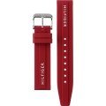 Esta bracelete de relógio Tommy Hilfiger é feita de silicone e está fixada ao relógio através de pinos de pressão. A bracelete tem uma largura de 17 mm e fecha através de fecho. A bracelete tem uma montagem a direito, o que significa que esta bracelete é adequada para todos os relógios Tommy Hilfiger com montagem da bracelete a direito.