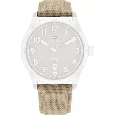Esta bracelete de relógio Tommy Hilfiger é feita de tecido e está fixada ao relógio através de pinos de pressão. A bracelete tem uma largura de 22 mm e fecha através de fecho. A bracelete tem uma montagem a direito, o que significa que esta bracelete é adequada para todos os relógios Tommy Hilfiger com montagem da bracelete a direito.