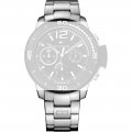 Esta bracelete de relógio Tommy Hilfiger é feita de aço inoxidável e está fixada ao relógio através de pinos de pressão. A bracelete tem uma largura de 22 mm e fecha através de fivela dobrável com botões de pressão. A bracelete não tem uma montagem a direito, o que significa que esta bracelete só é adequada para os relógios listados abaixo.