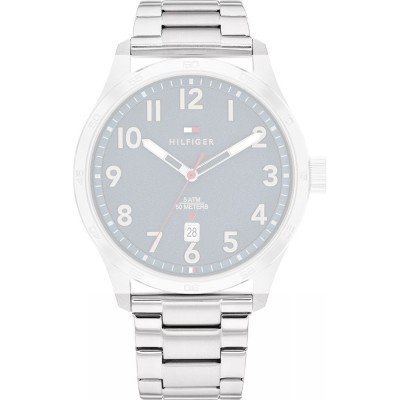 Esta bracelete de relógio Tommy Hilfiger é feita de aço inoxidável e está fixada ao relógio através de pinos de pressão. A bracelete tem uma largura de 22 mm e fecha através de fivela dobrável com botões de pressão. A bracelete tem uma montagem a direito, o que significa que esta bracelete é adequada para todos os relógios Tommy Hilfiger com montagem da bracelete a direito.