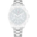 Esta bracelete de relógio Tommy Hilfiger é feita de aço inoxidável e está fixada ao relógio através de pinos de pressão. A bracelete tem uma largura de 18 mm e fecha através de fivela dobrável com botões de pressão. A bracelete não tem uma montagem a direito, o que significa que esta bracelete só é adequada para os relógios listados abaixo.