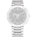 Esta bracelete de relógio Tommy Hilfiger é feita de aço inoxidável e está fixada ao relógio através de pinos em aço. A bracelete tem uma largura de 24 mm e fecha através de fivela dobrável com botões de pressão. A bracelete não tem uma montagem a direito, o que significa que esta bracelete só é adequada para os relógios listados abaixo.