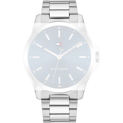 Esta bracelete de relógio Tommy Hilfiger é feita de aço inoxidável e está fixada ao relógio através de pinos em aço. A bracelete tem uma largura de 22 mm e fecha através de fivela dobrável com botões de pressão. A bracelete não tem uma montagem a direito, o que significa que esta bracelete só é adequada para os relógios listados abaixo.