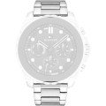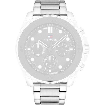 Esta bracelete de relógio Tommy Hilfiger é feita de aço inoxidável e está fixada ao relógio através de pinos de pressão. A bracelete tem uma largura de 24 mm e fecha através de fivela dobrável com botões de pressão. A bracelete tem uma montagem a direito, o que significa que esta bracelete é adequada para todos os relógios Tommy Hilfiger com montagem da bracelete a direito.