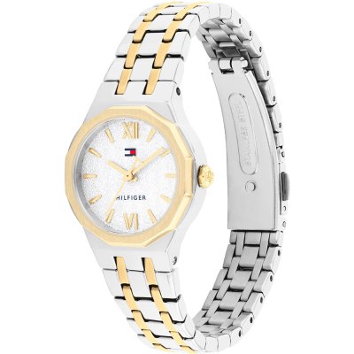 Este relógio Tommy Hilfiger tem uma caixa de Inox com um diâmetro de 25 mm e está equipado com uma bracelete de Inox. A caixa possui um movimento Seiko e o relógio tem um vidro Mineral.