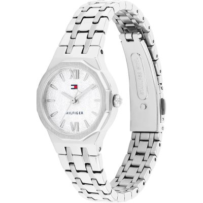 Este relógio Tommy Hilfiger tem uma caixa de Inox com um diâmetro de 25 mm e está equipado com uma bracelete de Inox. A caixa possui um movimento Seiko e o relógio tem um vidro Mineral.