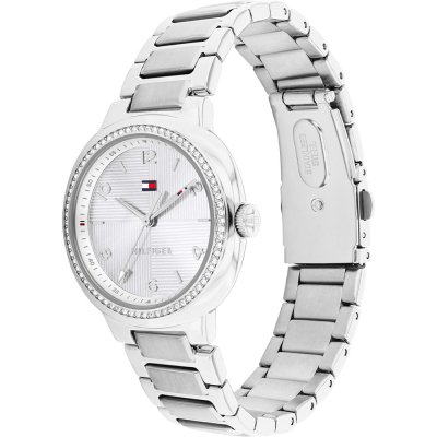 Este relógio Tommy Hilfiger tem uma caixa de Inox com um diâmetro de 32 mm e está equipado com uma bracelete de Inox. A caixa possui um movimento Seiko e o relógio tem um vidro Mineral.