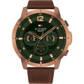 Este relógio Tommy Hilfiger tem uma caixa de Inox com um diâmetro de 50 mm e está equipado com uma bracelete de couro. A caixa possui um movimento Seiko Instruments Inc. e o relógio tem um vidro Mineral.