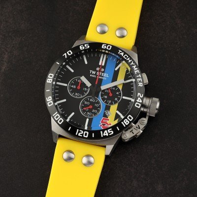 Este relógio TW Steel tem uma caixa de Inox com um diâmetro de 45 mm e está equipado com uma bracelete de borracha. A caixa possui um movimento Seiko Instruments Inc. e o relógio tem um vidro Mineral resist.