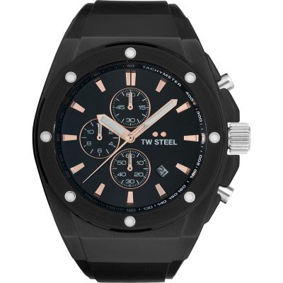 Este relógio TW Steel tem uma caixa de Inox com um diâmetro de 44 mm e está equipado com uma bracelete de borracha. A caixa possui um movimento Miyota e o relógio tem um vidro Mineral revestido a safira.