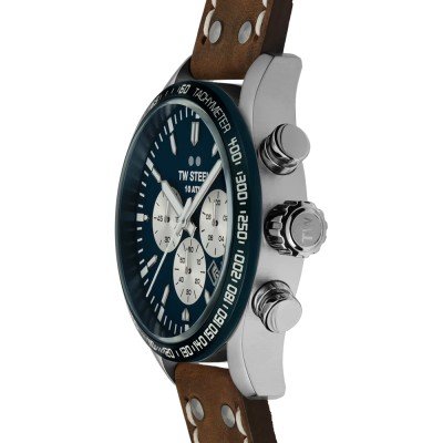 Este relógio TW Steel tem uma caixa de Inox com um diâmetro de 48 mm e está equipado com uma bracelete de couro. A caixa possui um movimento Miyota e o relógio tem um vidro Mineral.