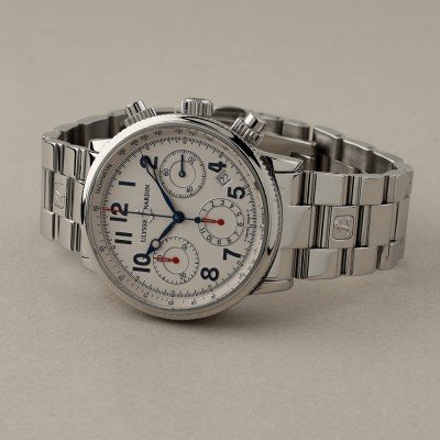 Este relógio Ulysse Nardin tem uma caixa de Inox com um diâmetro de 37 mm e está equipado com uma bracelete de Inox. A caixa possui um movimento ETA e o relógio tem um vidro Safira.