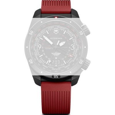 Esta bracelete de relógio Victorinox é feita de borracha e está fixada ao relógio através de pinos carregados por mola de liberação rápida. A bracelete tem uma largura de 21 mm e fecha através de fivela desdobrável. A bracelete tem uma montagem a direito, o que significa que esta bracelete é adequada para todos os relógios Victorinox com montagem da bracelete a direito.