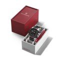 Este relógio Victorinox tem uma caixa de Inox com um diâmetro de 43 mm e está equipado com uma bracelete de borracha. A caixa possui um movimento Sellita e o relógio tem um vidro Safira anti-reflexo única.
