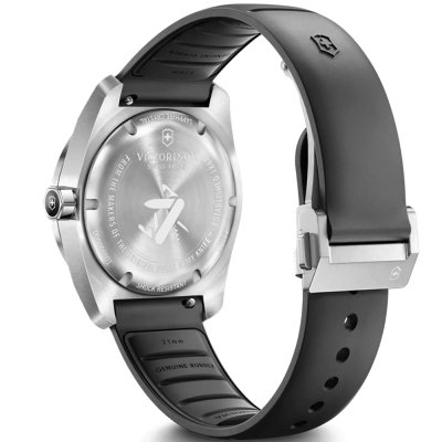 Este relógio Victorinox tem uma caixa de Inox com um diâmetro de 39 mm e está equipado com uma bracelete de borracha. A caixa possui um movimento Ronda e o relógio tem um vidro Safira anti-reflexo única.