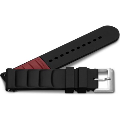 Esta bracelete de relógio Victorinox é feita de borracha e está fixada ao relógio através de pinos carregados por mola de liberação rápida. A bracelete tem uma largura de 21 mm e fecha através de fecho. A bracelete tem uma montagem a direito, o que significa que esta bracelete é adequada para todos os relógios Victorinox com montagem da bracelete a direito.