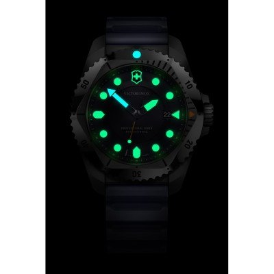 Os relógios de quartzo Victorinox Dive Pro estão disponíveis em aço e titânio e com uma seleção de diferentes braceletes, desde a borracha de cores vivas ao prático paracord. O que têm em comum é um potente movimento de quartzo Swiss Ronda, certificação ISO 6425, resistência à água de 30 ATM, uma luneta rotativa unidirecional e índices e ponteiros de alta visibilidade. O relógio é concebido, fabricado e testado na própria fábrica da Victorinox em Delémont.