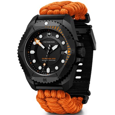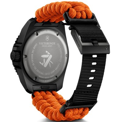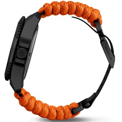 Este relógio Victorinox tem uma caixa de Titânio com um diâmetro de 43 mm e está equipado com uma bracelete de Paracord. A caixa possui um movimento Ronda e o relógio tem um vidro Safira anti-reflexo única.