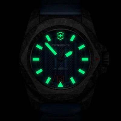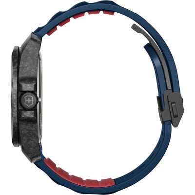 Este relógio Victorinox tem uma caixa de Carbono com um diâmetro de 41 mm e está equipado com uma bracelete de borracha. A caixa possui um movimento Sellita e o relógio tem um vidro Safira.