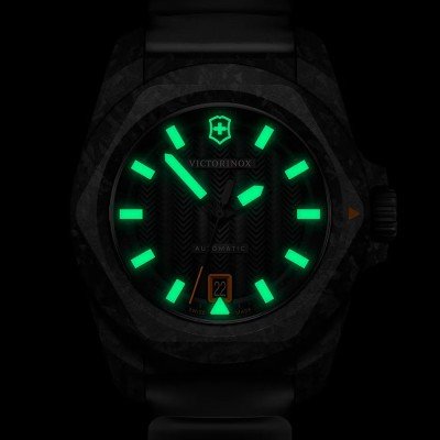 Este relógio Victorinox tem uma caixa de Carbono com um diâmetro de 41 mm e está equipado com uma bracelete de borracha. A caixa possui um movimento Sellita e o relógio tem um vidro Safira.