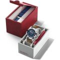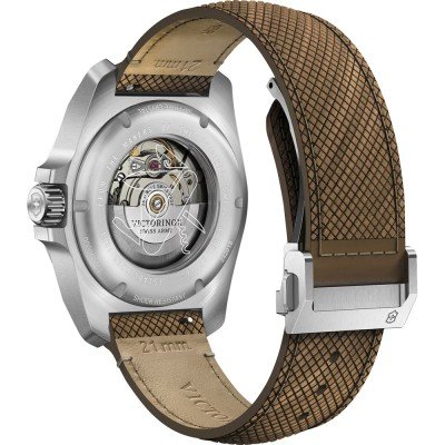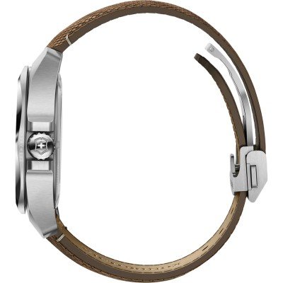 Este relógio Victorinox tem uma caixa de Inox com um diâmetro de 41 mm e está equipado com uma bracelete de couro. A caixa possui um movimento Sellita e o relógio tem um vidro Safira.