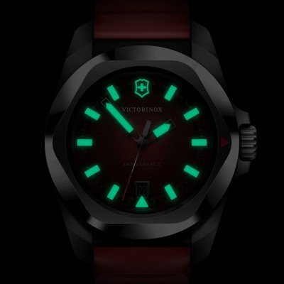 Este relógio Victorinox tem uma caixa de Inox com um diâmetro de 41 mm e está equipado com uma bracelete de borracha. A caixa possui um movimento Ronda e o relógio tem um vidro Safira anti-reflexo única.