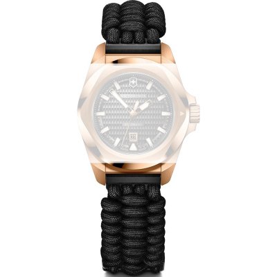 Esta bracelete de relógio Victorinox é feita de paracord e está fixada ao relógio através de pinos carregados por mola de liberação rápida. A bracelete tem uma largura de 16 mm e fecha através de fecho. A bracelete tem uma montagem a direito, o que significa que esta bracelete é adequada para todos os relógios Victorinox com montagem da bracelete a direito.