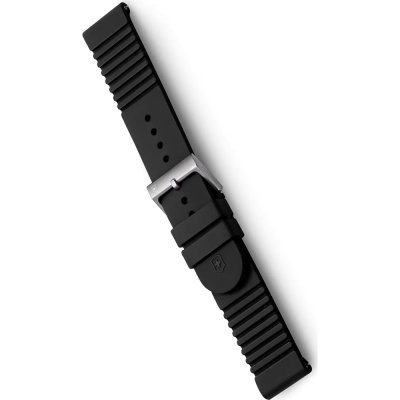 Esta bracelete de relógio Victorinox é feita de borracha e está fixada ao relógio através de pinos carregados por mola de liberação rápida. A bracelete tem uma largura de 21 mm e fecha através de fecho. A bracelete tem uma montagem a direito, o que significa que esta bracelete é adequada para todos os relógios Victorinox com montagem da bracelete a direito.