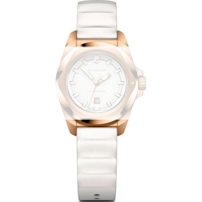 Esta bracelete de relógio Victorinox é feita de silicone e está fixada ao relógio através de pinos de pressão. A bracelete tem uma largura de 16 mm e fecha através de fecho. A bracelete tem uma montagem a direito, o que significa que esta bracelete é adequada para todos os relógios Victorinox com montagem da bracelete a direito.