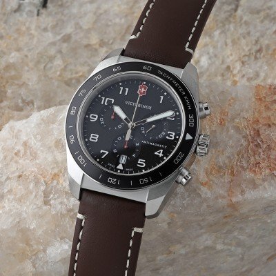 Este relógio Victorinox tem uma caixa de Inox com um diâmetro de 42 mm e está equipado com uma bracelete de couro. A caixa possui um movimento Ronda e o relógio tem um vidro Safira anti-reflexo única.