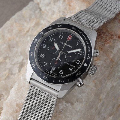 Este relógio Victorinox tem uma caixa de Inox com um diâmetro de 42 mm e está equipado com uma bracelete de Inox. A caixa possui um movimento Ronda e o relógio tem um vidro Safira anti-reflexo única.